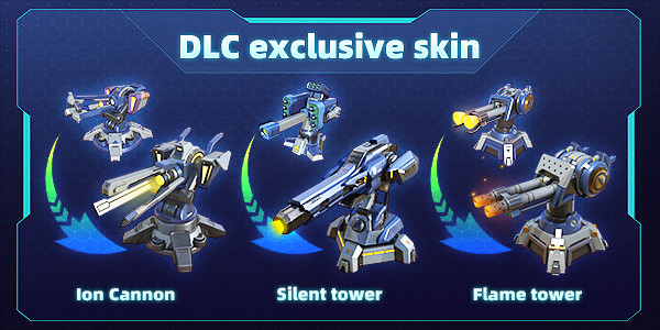 特殊装备包包含三种生存模式防御塔的特殊皮肤:寂静塔、火焰塔和离子炮。