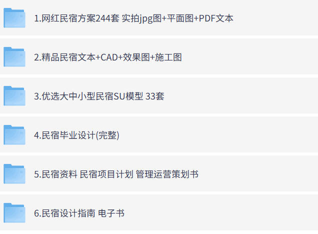 ❤️【个人珍藏精品付费资源】设计必备-民宿设计方案合集【CAD方案+SU模型+软装+资料】 [32.6G]